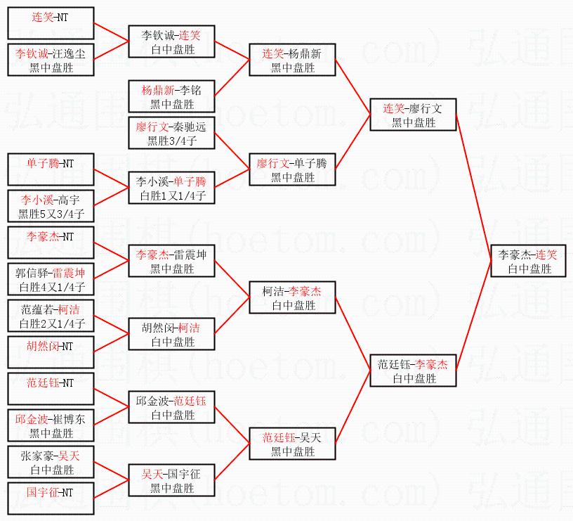 2.上半区半决赛连笑获胜, 比分:连笑 1:0 廖行文。棋局: