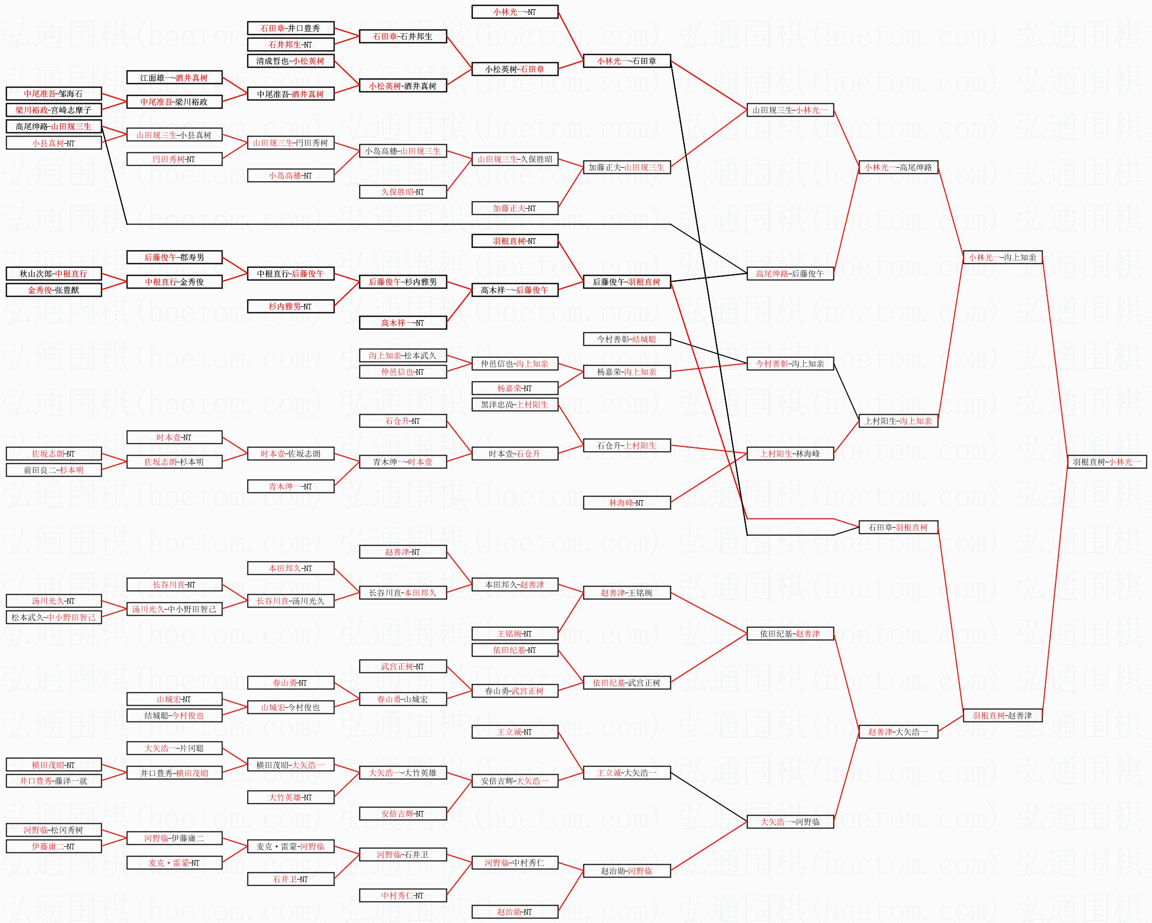 1.小林光一获得冠军,羽根直树获得亚军。决赛比分:小林光一1:0羽根直树。棋局: