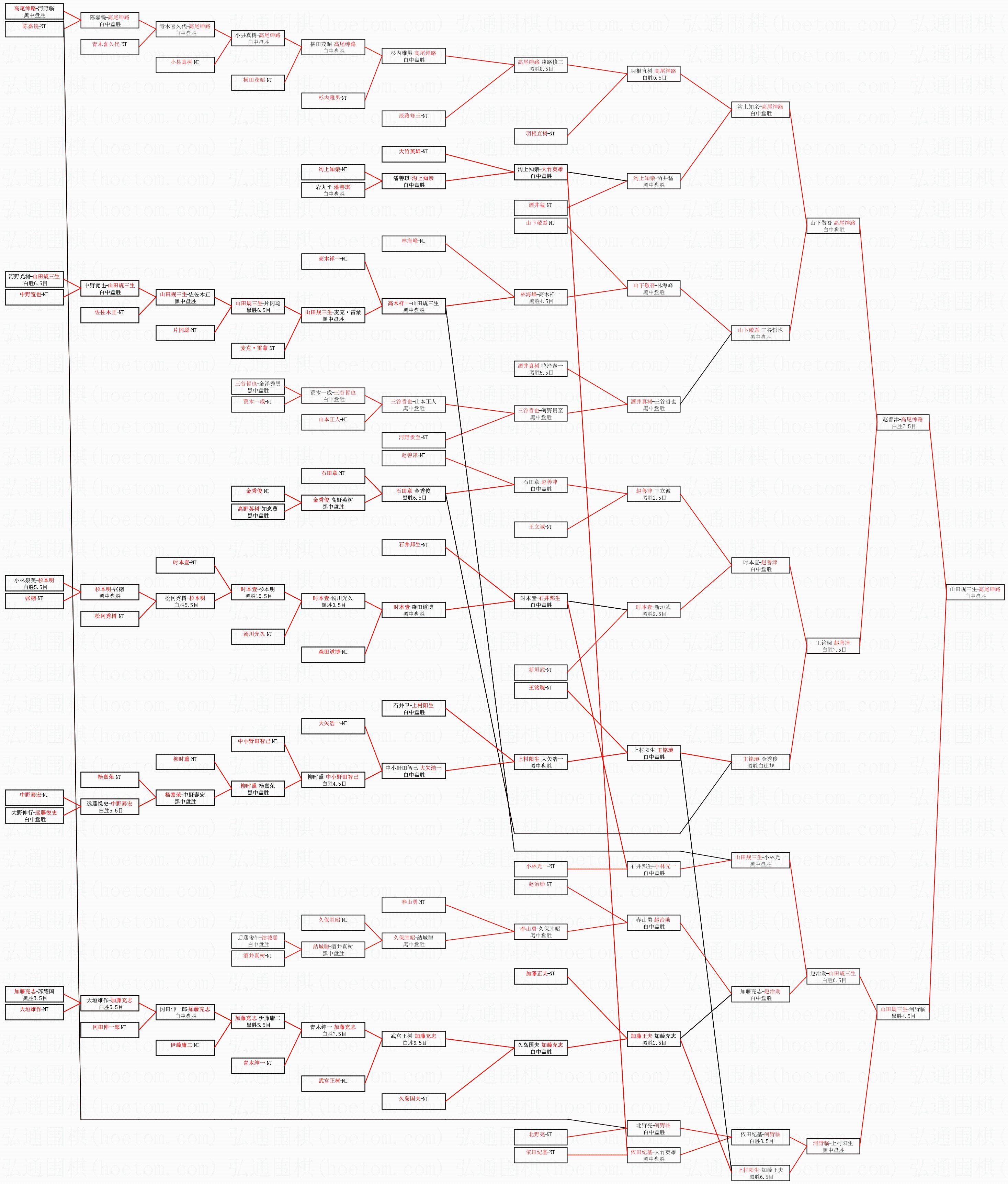 1.高尾绅路获得冠军,山田规三生获得亚军。决赛比分:高尾绅路1:0山田规三生。棋局: