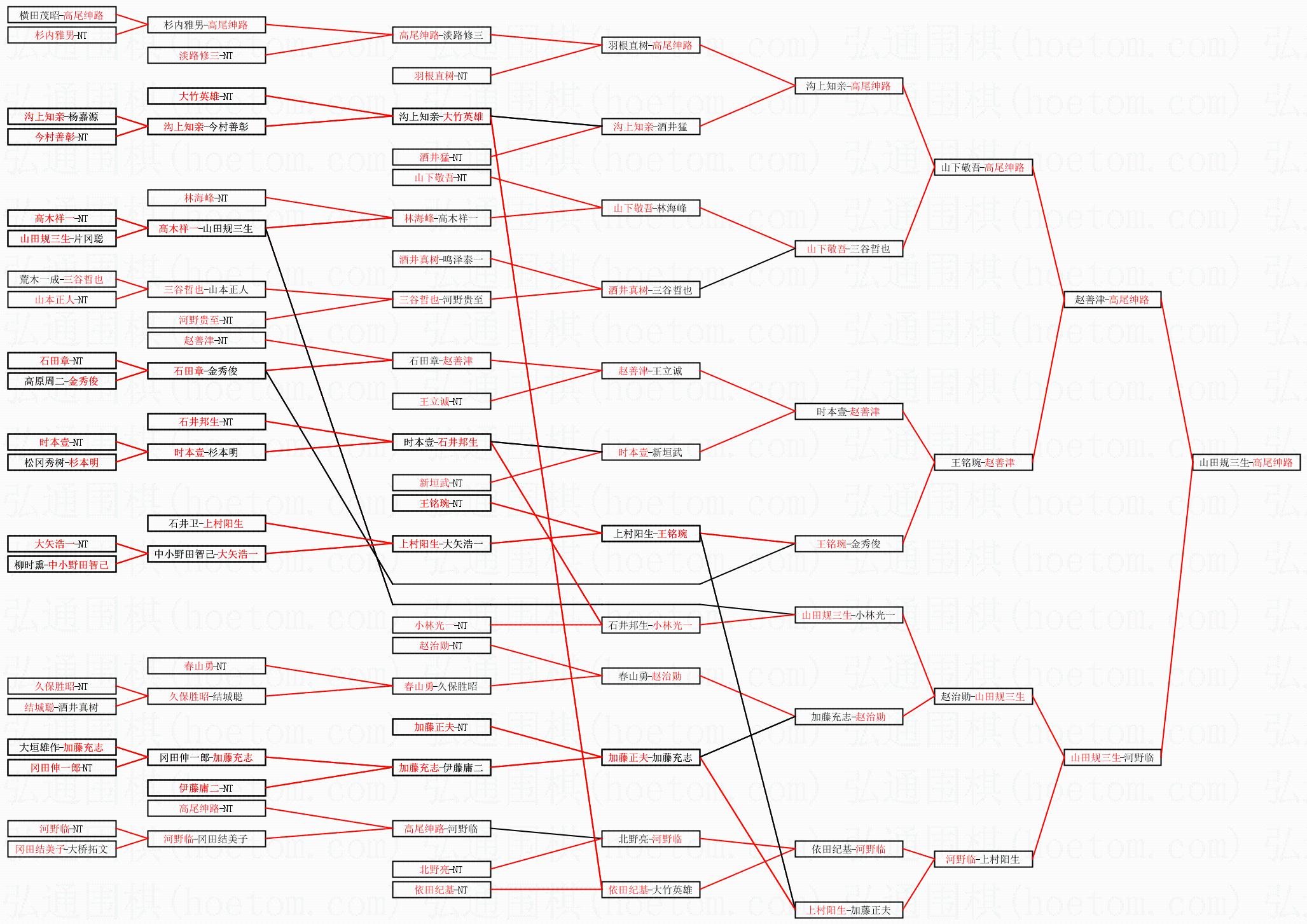 1.高尾绅路获得冠军,山田规三生获得亚军。决赛比分:高尾绅路1:0山田规三生。棋局: