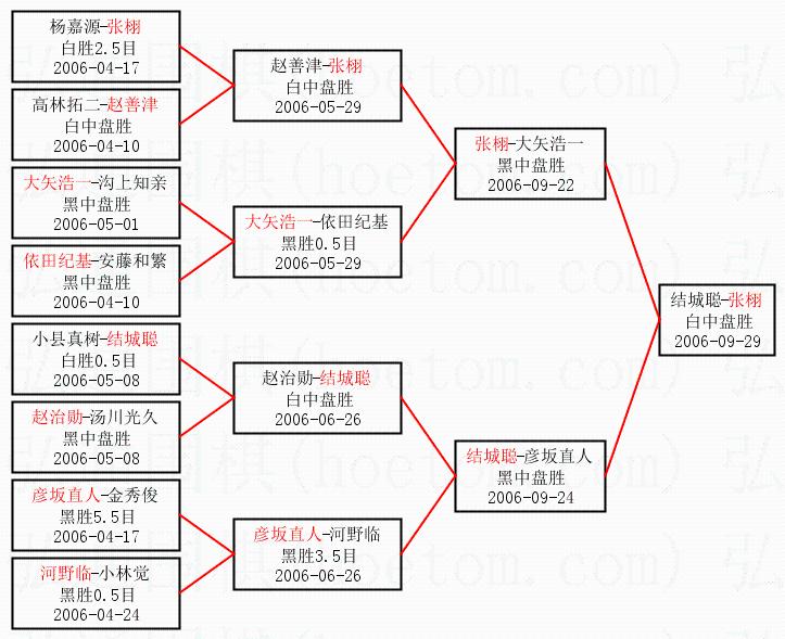 1.张栩获得冠军,结城聪获得亚军。决赛比分:张栩1:0结城聪。棋局: