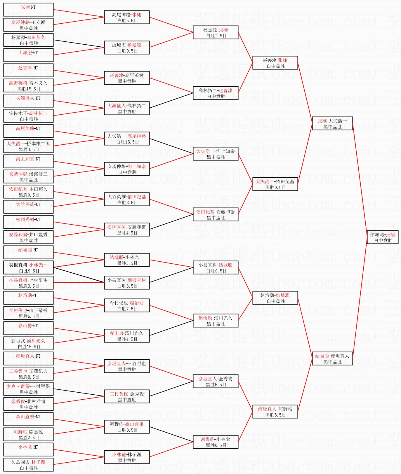 1.张栩获得冠军,结城聪获得亚军。决赛比分:张栩1:0结城聪。棋局: