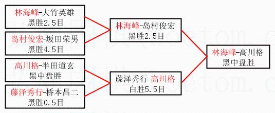 2.上半区半决赛林海峰获胜, 比分:林海峰 1:0 岛村俊宏。棋局:
