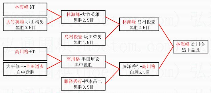 2.上半区半决赛林海峰获胜, 比分:林海峰 1:0 岛村俊宏。棋局: