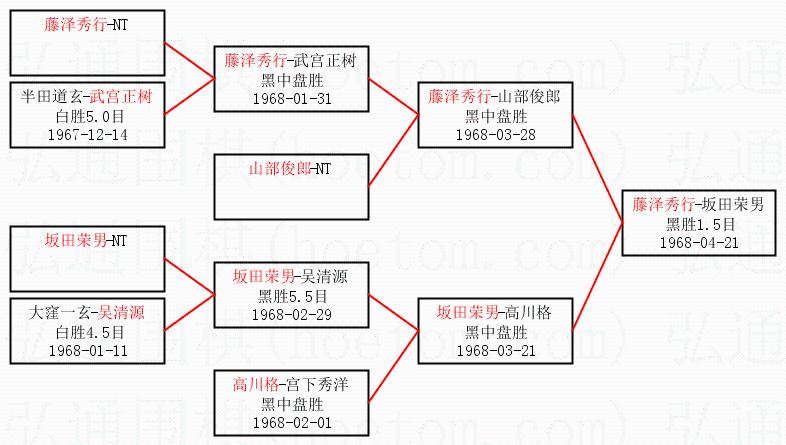 1.藤泽秀行获得冠军,坂田荣男获得亚军。决赛比分:藤泽秀行2:1坂田荣男。棋局: