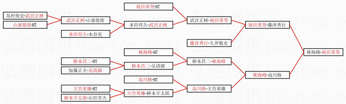 | 1.坂田荣男获得冠军,林海峰获得亚军。决赛比分:坂田荣男2:0林海峰。棋局: | ||