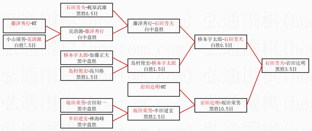 | 1.石田芳夫获得冠军,岩田达明获得亚军。决赛比分:石田芳夫3:1岩田达明。棋局: | ||