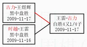 2.上半区半决赛古力获胜, 比分:古力 1:0 王煜辉。棋局: