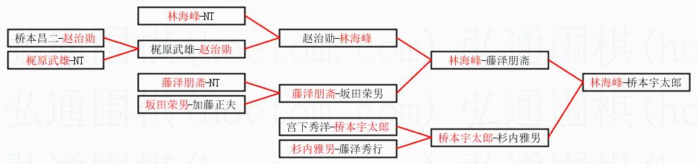 | 1.林海峰获得冠军,桥本宇太郎获得亚军。决赛比分:林海峰3:1桥本宇太郎。棋局: | ||
