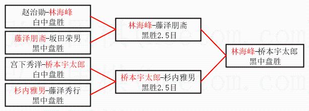 | 2.上半区半决赛林海峰获胜, 比分:林海峰 1:0 藤泽朋斋。棋局: | ||