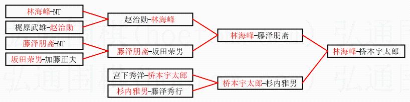 | 1.林海峰获得冠军,桥本宇太郎获得亚军。决赛比分:林海峰3:1桥本宇太郎。棋局: | ||