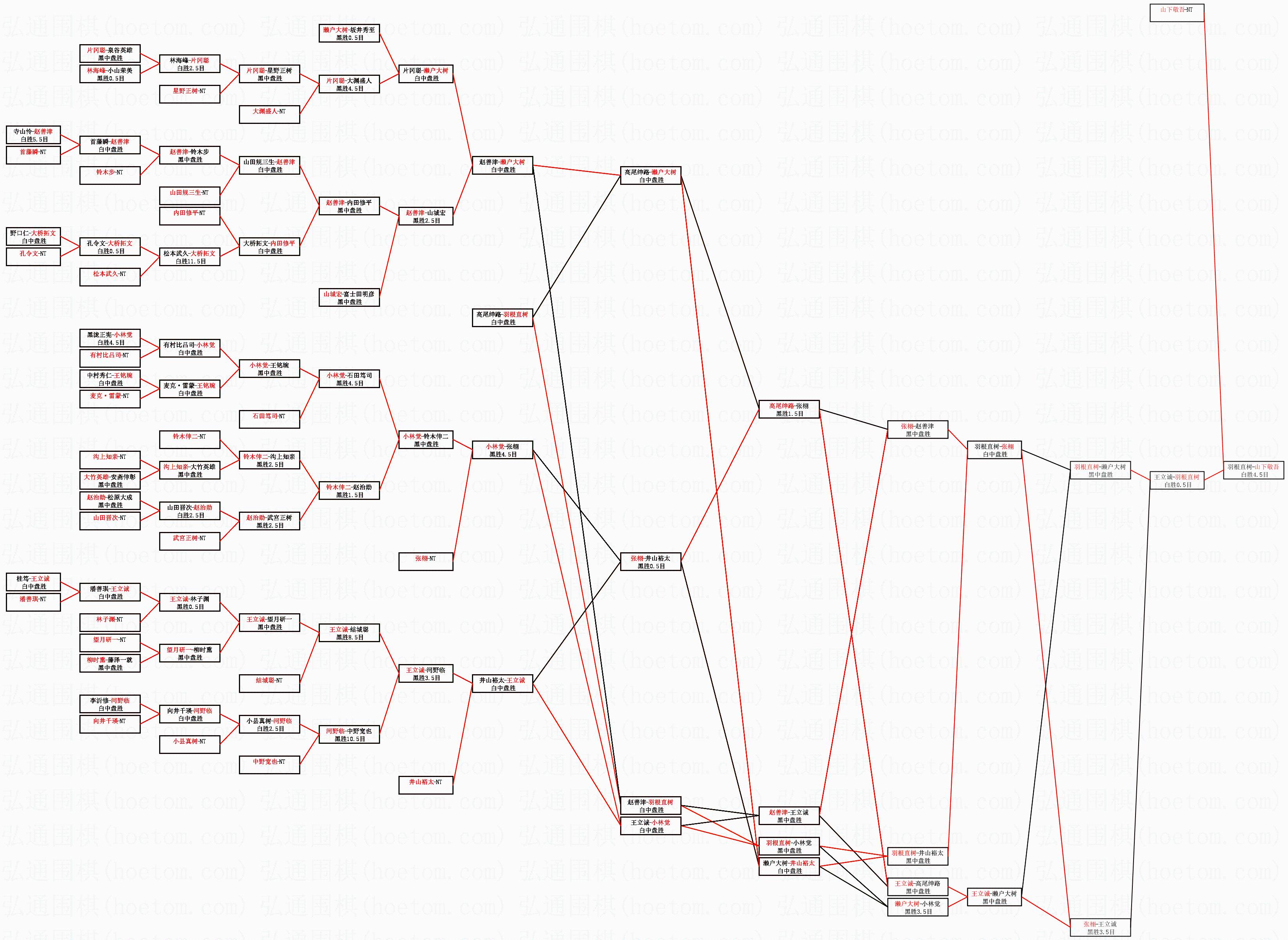 | 1.山下敬吾获得冠军,羽根直树获得亚军。决赛比分:山下敬吾4:3羽根直树。棋局: | ||