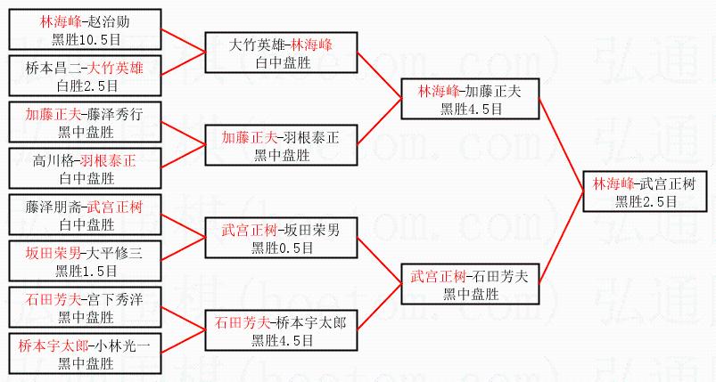 1.林海峰获得冠军,武宫正树获得亚军。决赛比分:林海峰3:0武宫正树。棋局:
