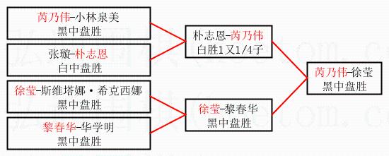 2.上半区半决赛芮乃伟获胜, 比分:芮乃伟 1:0 朴志恩。棋局: