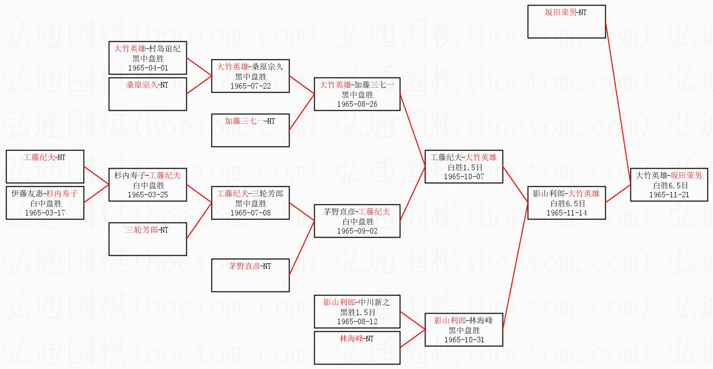 1.坂田荣男获得冠军,大竹英雄获得亚军。决赛比分:坂田荣男1:0大竹英雄。棋局: