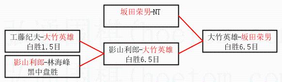 3.下半区半决赛大竹英雄获胜,比分:大竹英雄1:0影山利郎。棋局: