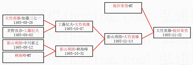 1.坂田荣男获得冠军,大竹英雄获得亚军。决赛比分:坂田荣男1:0大竹英雄。棋局: