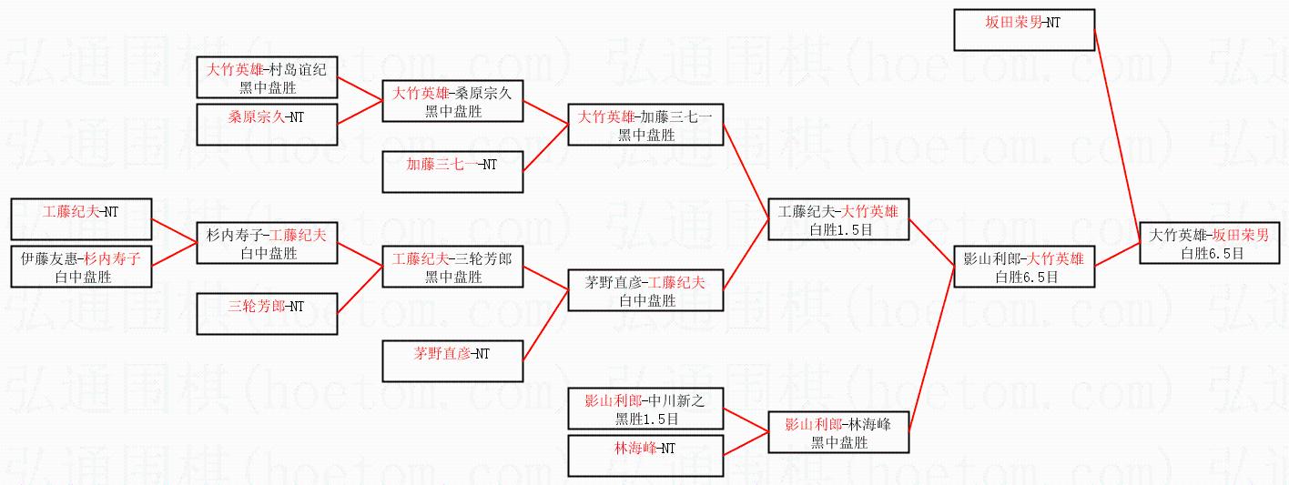 1.坂田荣男获得冠军,大竹英雄获得亚军。决赛比分:坂田荣男1:0大竹英雄。棋局: