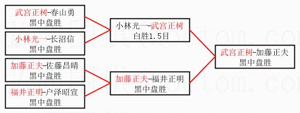 1.武宫正树获得冠军,加藤正夫获得亚军。决赛比分:武宫正树1:0加藤正夫。棋局: