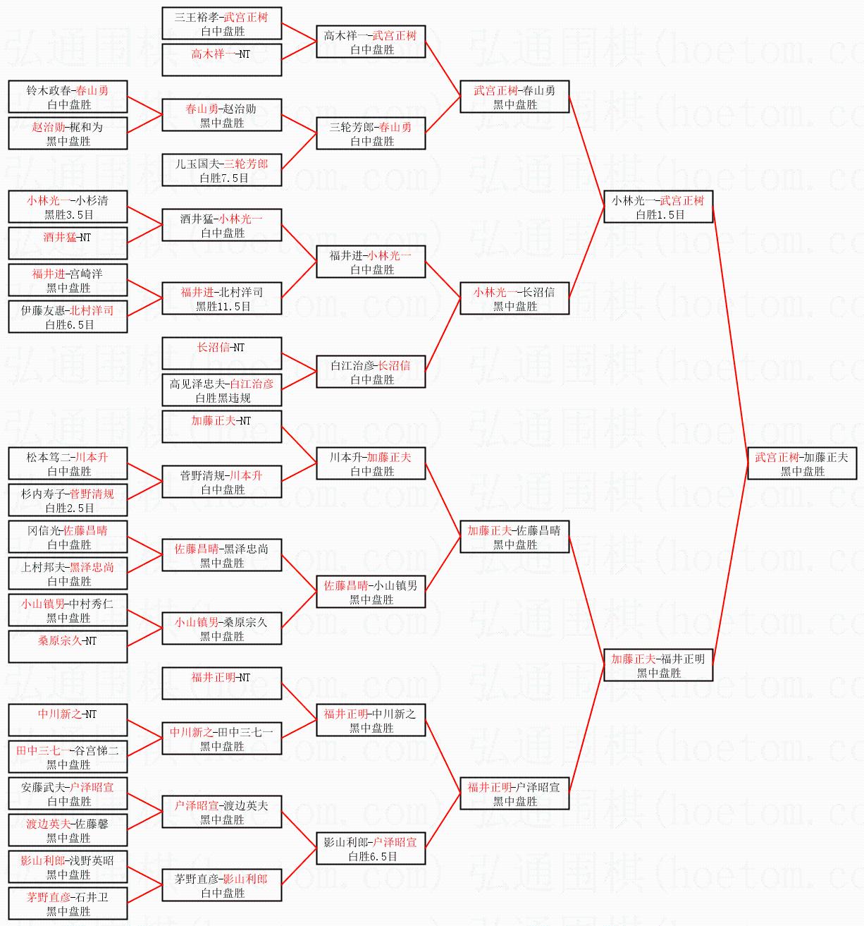 1.武宫正树获得冠军,加藤正夫获得亚军。决赛比分:武宫正树1:0加藤正夫。棋局: