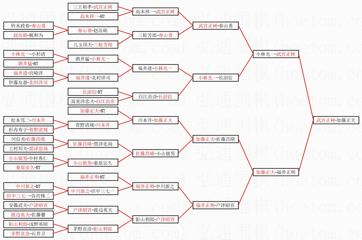 1.武宫正树获得冠军,加藤正夫获得亚军。决赛比分:武宫正树1:0加藤正夫。棋局: