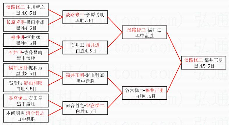 1.淡路修三获得冠军,福井正明获得亚军。决赛比分:淡路修三2:1福井正明。棋局: