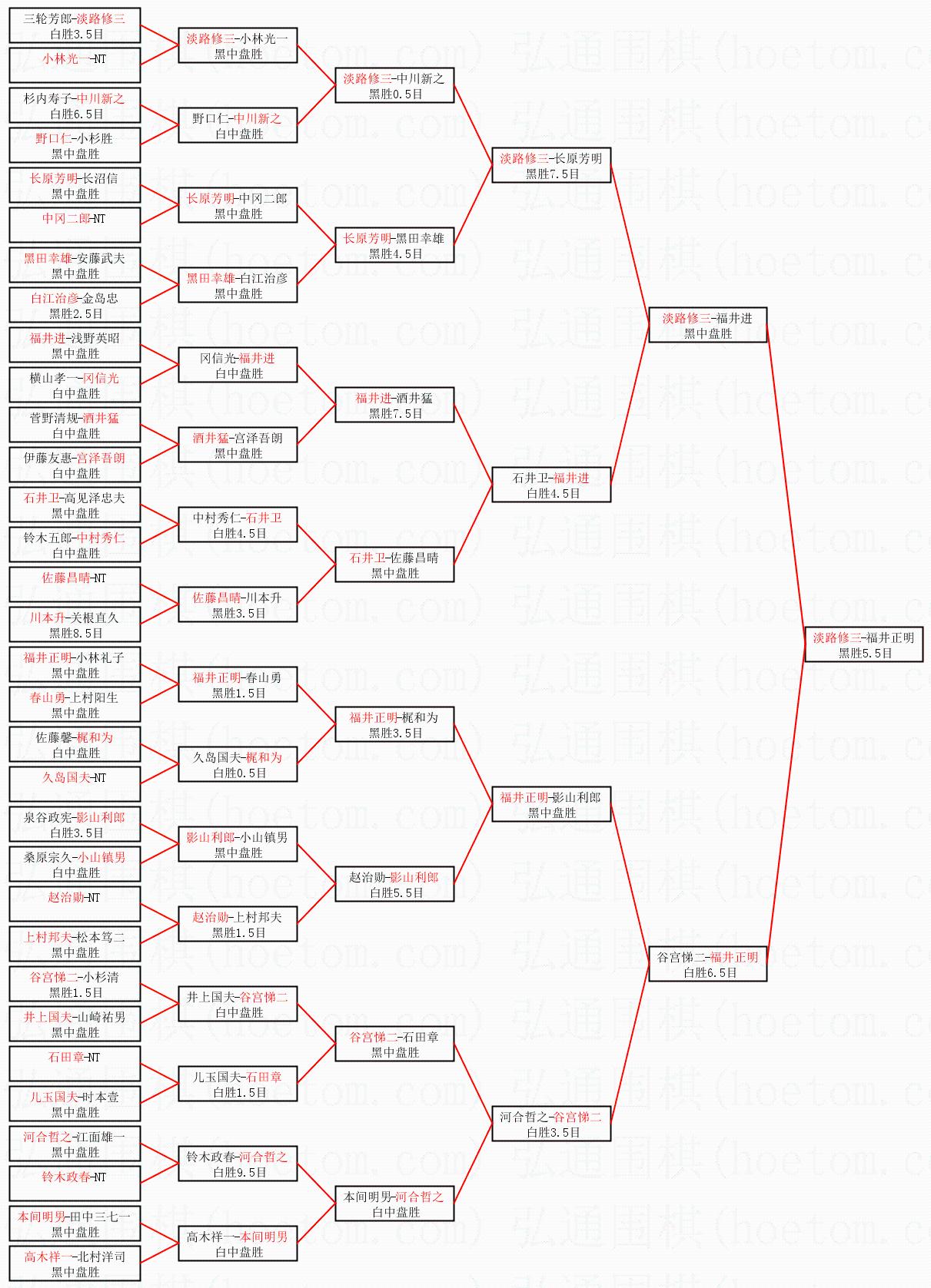 | 1.淡路修三获得冠军,福井正明获得亚军。决赛比分:淡路修三2:1福井正明。棋局: | ||