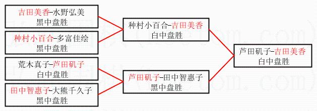 1.吉田美香获得冠军,芦田矶子获得亚军。决赛比分:吉田美香1:0芦田矶子。棋局: