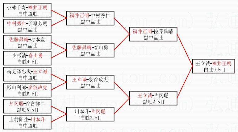 | 1.福井正明获得冠军,王立诚获得亚军。决赛比分:福井正明2:1王立诚。棋局: | ||