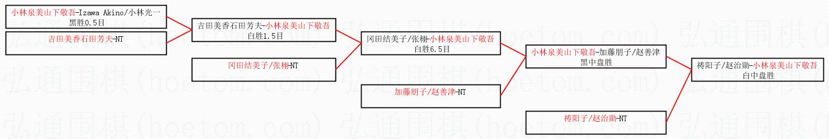 1.小林泉美山下敬吾获得冠军,祷阳子/赵治勋获得亚军。决赛比分:小林泉美山下敬吾1:0祷阳子/赵治勋。棋局: