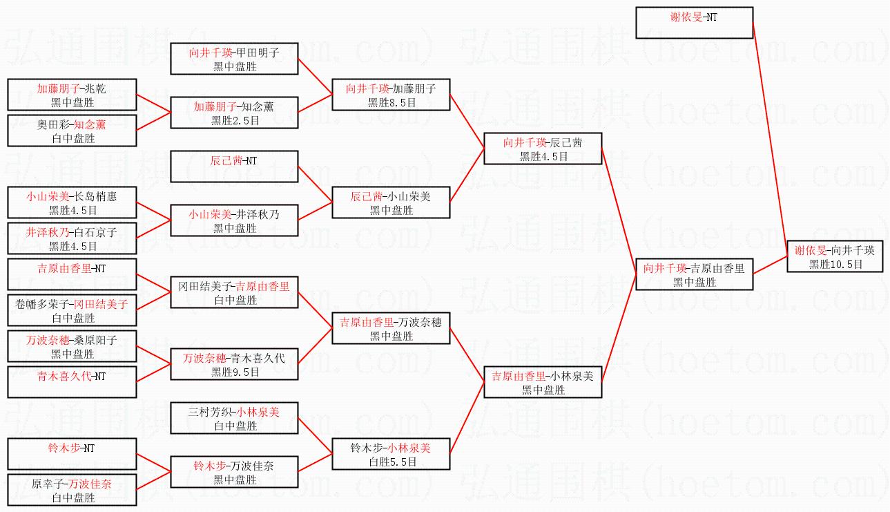 1.谢依旻获得冠军,向井千瑛获得亚军。决赛比分:谢依旻3:0向井千瑛。棋局: