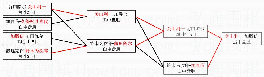 | 1.关山利一获得冠军,加滕信获得亚军。决赛比分:关山利一4:3加滕信。棋局: | ||