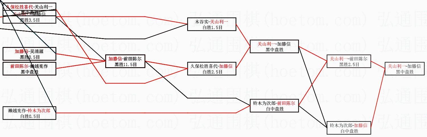 1.关山利一获得冠军,加滕信获得亚军。决赛比分:关山利一4:3加滕信。棋局: