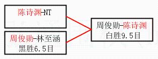 3.下半区半决赛周俊勋获胜,比分:周俊勋1:0林至涵。棋局: