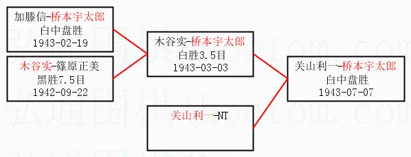 2.上半区半决赛桥本宇太郎获胜, 比分:桥本宇太郎 1:0 木谷实。棋局: