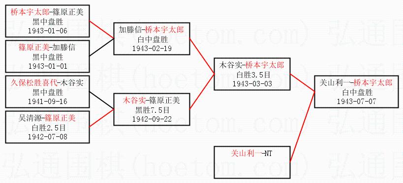 1.桥本宇太郎获得冠军,关山利一获得亚军。决赛比分:桥本宇太郎2:0关山利一。棋局: