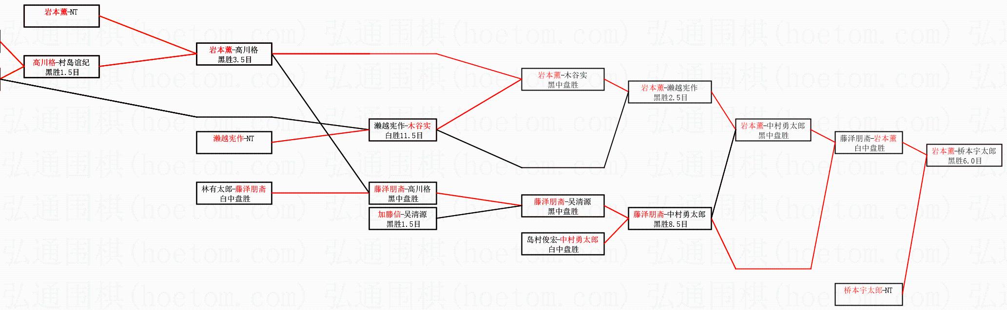 1.岩本薰获得冠军,桥本宇太郎获得亚军。决赛比分:岩本薰5:3桥本宇太郎。棋局:
