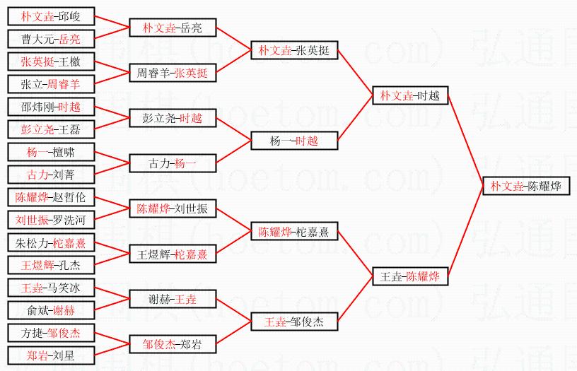 1.朴文垚获得冠军,陈耀烨获得亚军。决赛比分:朴文垚1:0陈耀烨。棋局: