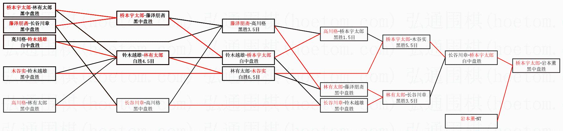 1.桥本宇太郎获得冠军,岩本薰获得亚军。决赛比分:桥本宇太郎4:0岩本薰。棋局: