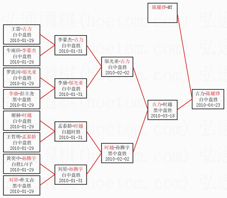 1.陈耀烨获得冠军,古力获得亚军。决赛比分:陈耀烨2:1古力。棋局: