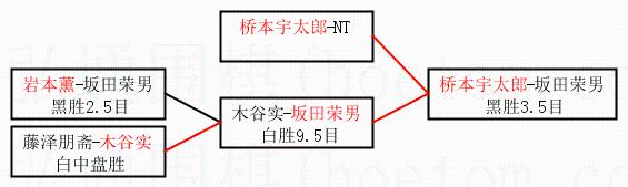 | 1.桥本宇太郎获得冠军,坂田荣男获得亚军。决赛比分:桥本宇太郎4:3坂田荣男。棋局: | ||