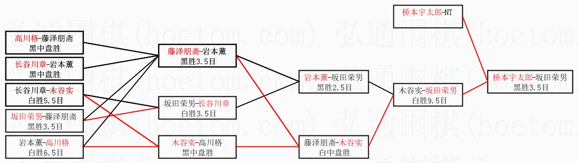 | 1.桥本宇太郎获得冠军,坂田荣男获得亚军。决赛比分:桥本宇太郎4:3坂田荣男。棋局: | ||