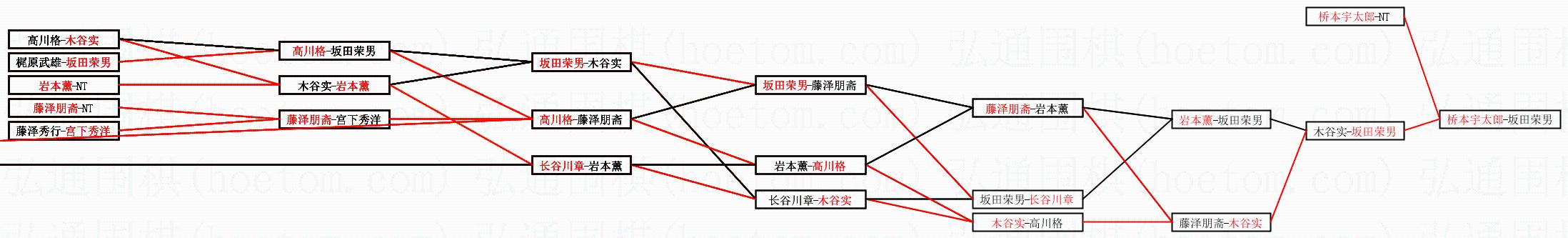 | 1.桥本宇太郎获得冠军,坂田荣男获得亚军。决赛比分:桥本宇太郎4:3坂田荣男。棋局: | ||
