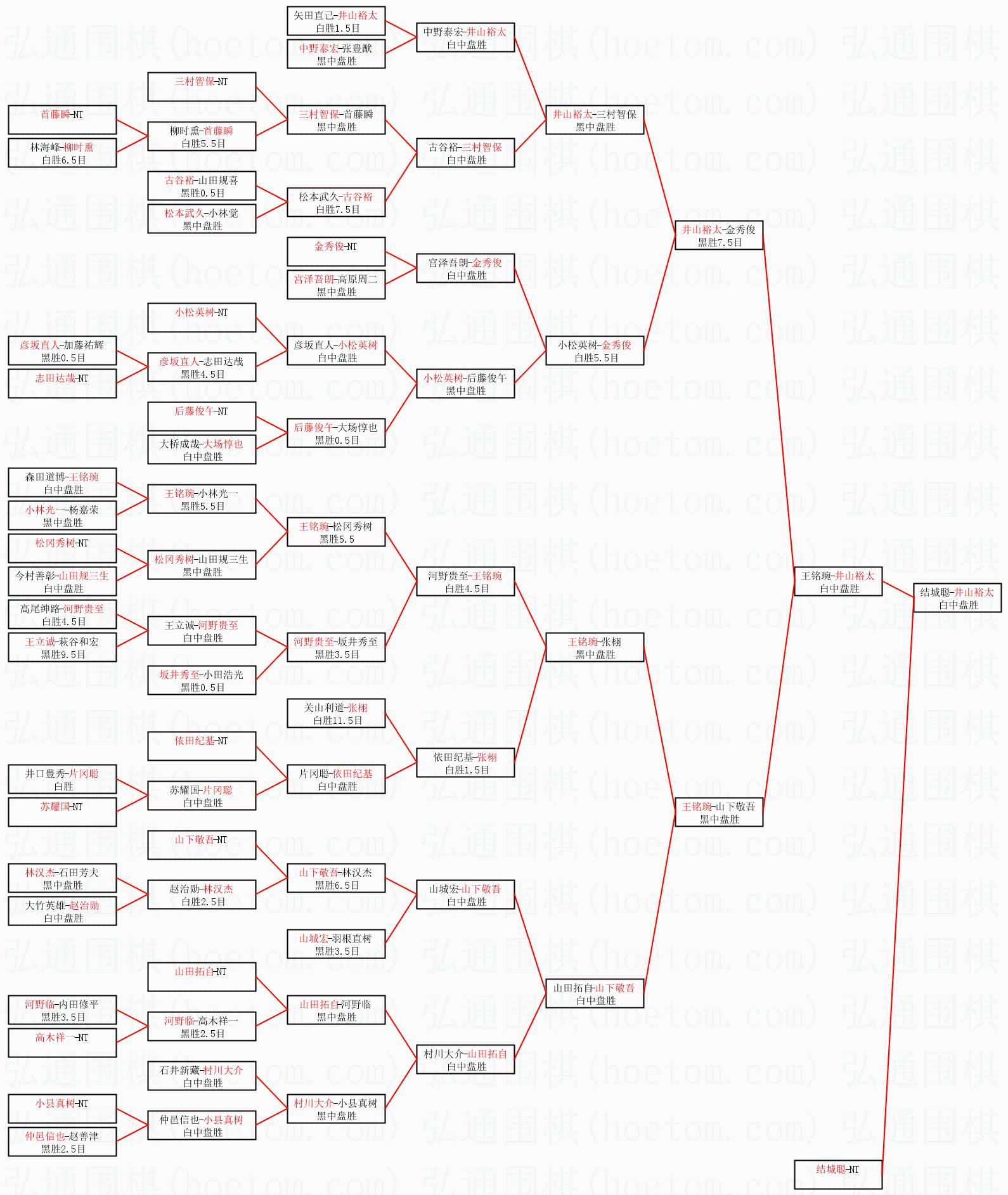 2.上半区半决赛井山裕太获胜, 比分:井山裕太 1:0 王铭琬。棋局: