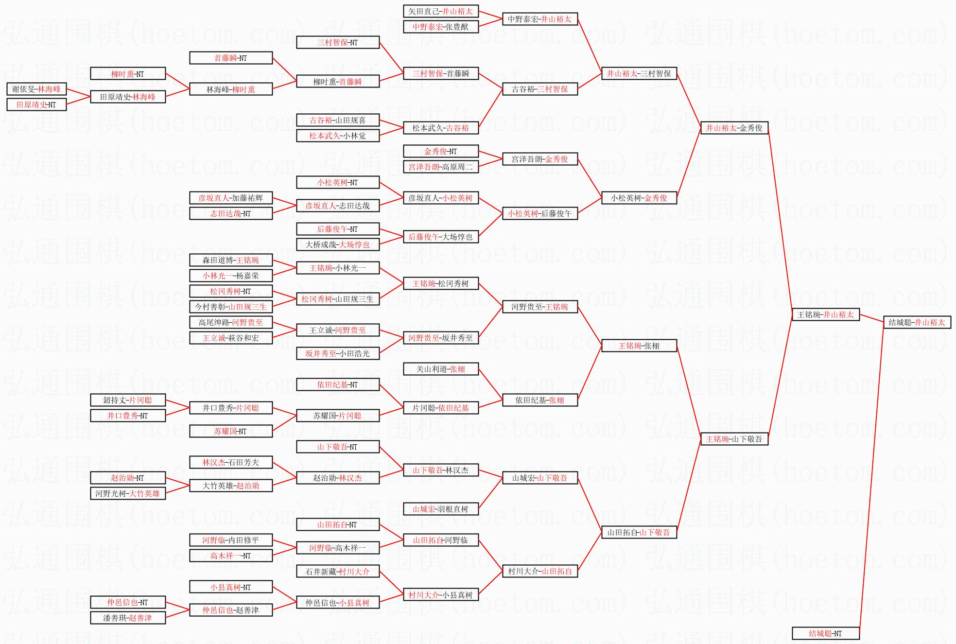 2.上半区半决赛井山裕太获胜, 比分:井山裕太 1:0 王铭琬。棋局: