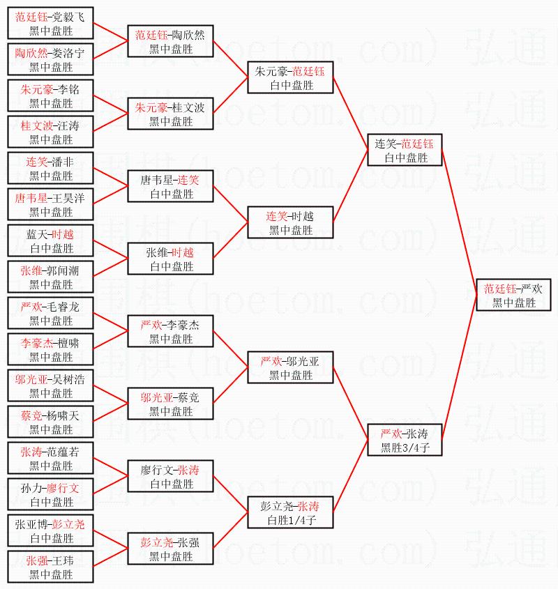 2.上半区半决赛范廷钰获胜, 比分:范廷钰 1:0 连笑。棋局: