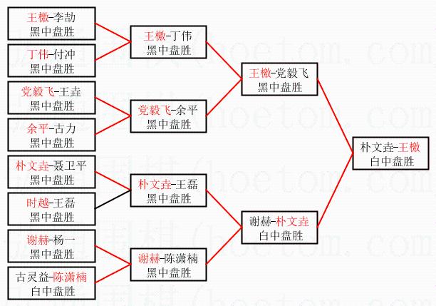 1.王檄获得冠军,朴文垚获得亚军。决赛比分:王檄1:0朴文垚。棋局: