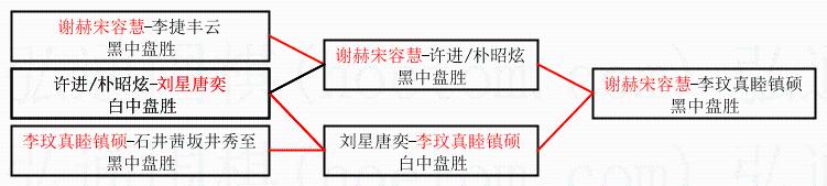 | 2.上半区半决赛谢赫宋容慧获胜, 比分:谢赫宋容慧 1:0 许进/朴昭炫。棋局: | ||