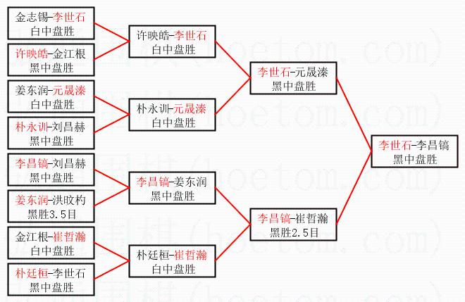 1.李世石获得冠军,李昌镐获得亚军。决赛比分:李世石2:0李昌镐。棋局: