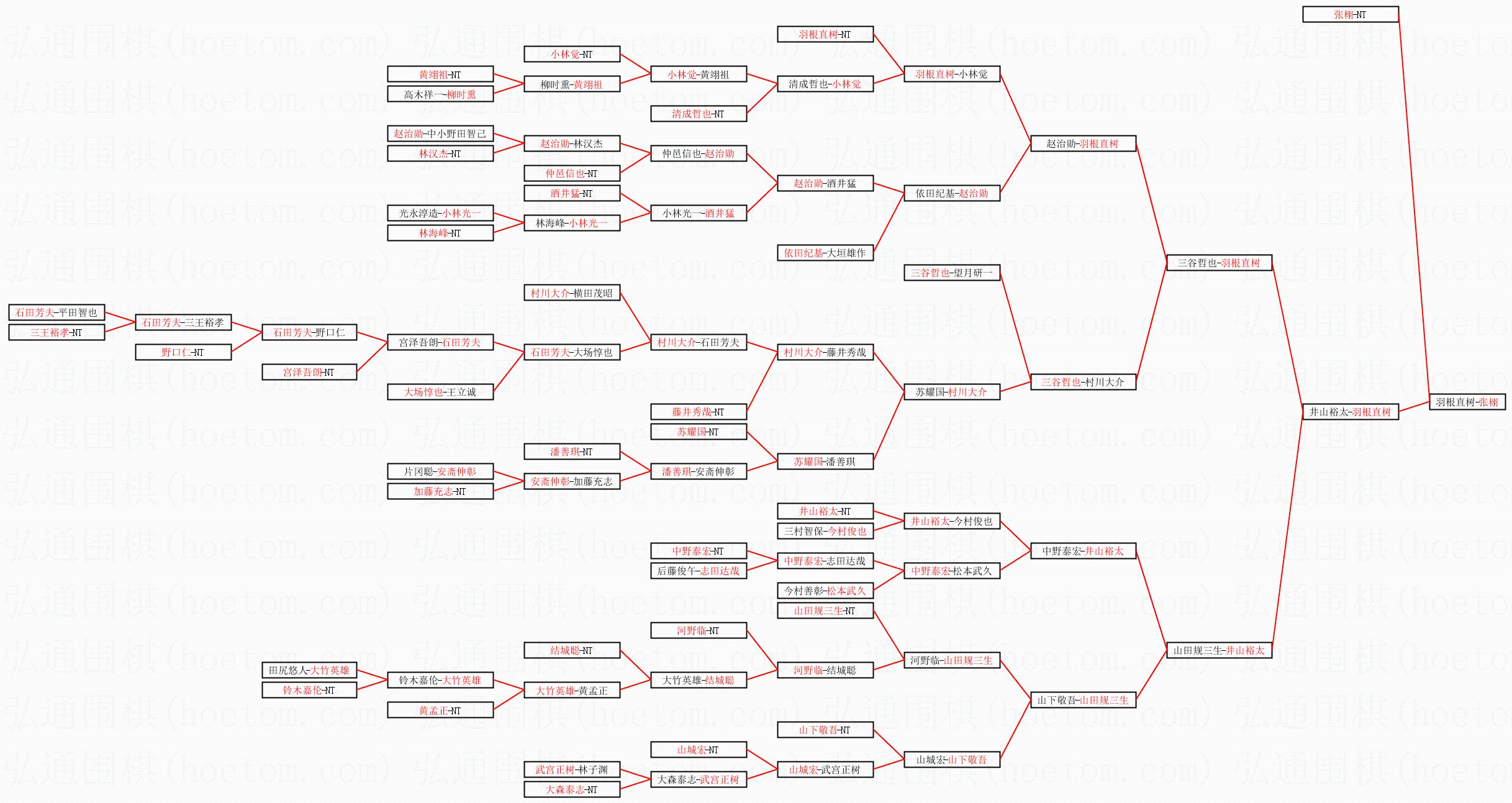 1.张栩获得冠军,羽根直树获得亚军。决赛比分:张栩3:0羽根直树。棋局: